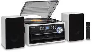 Jensen JTA-475 3-Speed Turntable with CD, Cassette & AM/FM Stereo Radio - White + Bonus 2 Pack Record Player Replacment Needles