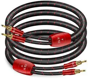 SKW Single Speaker Cable with Convertible Banana and Spade Plugs Entry Level HC Series Cable 9.8ft/3M (One Cable)