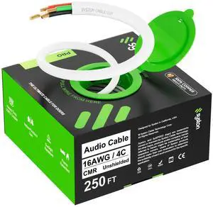 SYSTON 16/4 Speaker Audio Cable Wire Bulk, 16AWG 4C Strand OFC - Oxygen Free Copper Conductors, CMR Riser-Rated Indoor/Outdoor UV Resistant RoHS Compliant for Home Theater Car Speakers, White 250 FT