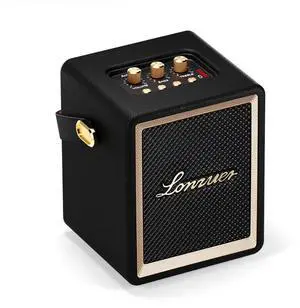 Lonzuer Action Wooden Portable Speaker with Handle Small Portable Bluetooth Speakers with 5000mAh Battery Speakers Bluetooth Wireless for Indoor Outdoor Campaign-Black