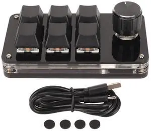 TOPINCN Mini Keypad, DIY Programmable General Plug and Play Wired Connection 6 Key One Handed Keypad with Knob RGB Light for PC (Black)