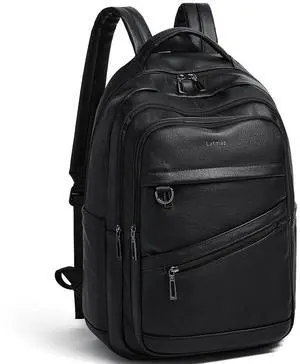 LATMAP 43L Backpack for Women Men - Vegan Leather Backpack Purse Travel Carry-on Bag College Bookbag Work fits 17" Laptop, Black