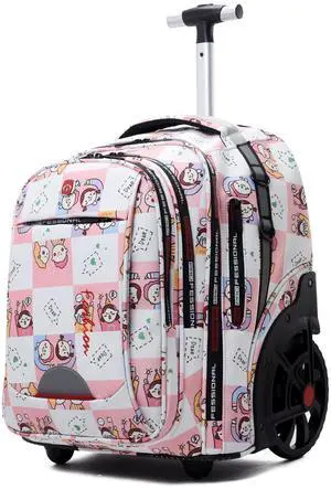 WMHYLYH Waterproof Rolling Backpack for Women and Men, Laptop Backpack with Wheels for Adults, Carry on Backpack with Large Wheels for Travel and Business Commuter (Pink, 22inch)