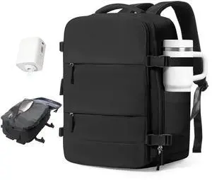 Vacuum Travel Backpack with Pump Women,Personal Item Carry on Backpacks Flight Approved 18x14x8 inches Men,Laptop Waterproof Work Compression bags Casual Daypack Mochila de Viaje Compresion al Black