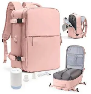 Vacuum Seal Travel Backpack with Air Pump,Compression Vacpack Waterproof Carry On Backpack for Travel Women Men with Vacuum System,Airlines Approved Daypack Laptop Space Saver Bags,Pink