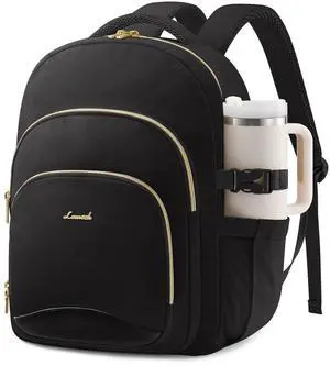 LOVEVOOK Tote Bag, Laptop Bag for Women with Large Cup Holder, Work Teacher Tote Bag with Large Cup Holder, Nurse Diaper Bag for Travel, Women's Handbags for Teacher gift, Black-Purple, 15.6 Inch