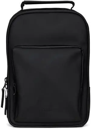 RAINS Book Daypack Large Black Laptop Backpack for Men and Women, Waterproof Black Minimalist Commuter Bag with 15-16"