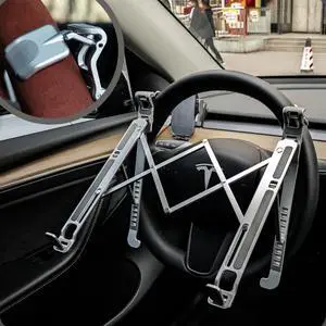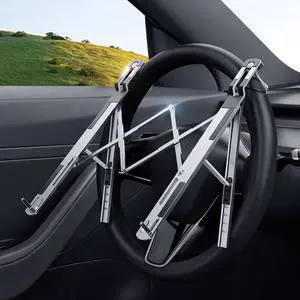 Angle Adjustable Car Steering Wheel Laptop Holder,Foldable Laptop Stand for car,Metal Car Notebook Riser ^^ Car Reading Stand ^^ Car Tablet Holder, Multipurpose Travel Car Accessories (Silver)
