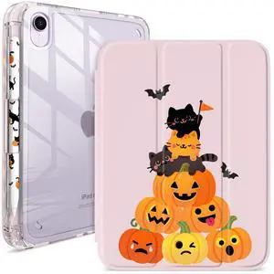 Pelindrons Halloween Cartoon Pumpkin iPad mini 6/7 Case 8.3-Inch (2021/2024) Hot Cute Pattern Cover for Girls, Tri-Fold Stand, Auto Sleep/Wake, Aesthetic Girly Protective Accessories