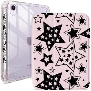 Pelindrons Vintage Retro Black Star iPad mini 6/7 Case for Women & Girls - Shockproof Clear Case with Pencil Holder, 3-Fold Stand & Auto Wake/Sleep