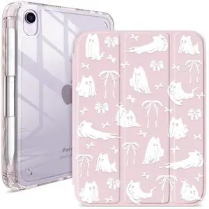 Pelindrons Cartoon Halloween Ghost iPad mini 6/7 Case 8.3-Inch (2021/2024) Hot Cute Pattern Cover for Girls, Tri-Fold Stand, Auto Sleep/Wake, Aesthetic Girly Protective Accessories