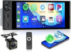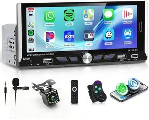 6.9-inch Single Din Car Stereo Wireless Carplay,1280X480P IPS Touch Screen Car Radio,5.0Bluetooth Audio,Night Vision Backup Camera,Mirror Link,EQ,GPS,Type-C/USB,SWC,7-Color Backlight,Mic,Android Auto