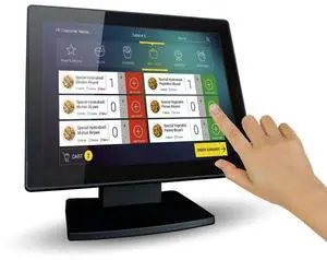 12-Inch Capacitive Multi-Touch POS TFT LED Touchscreen Monitor, True Flat Seamless Design with Adjustable POS Stand for Retail Restaurant, HDMI & VGA Inputs, High Resolution 1024 x 768