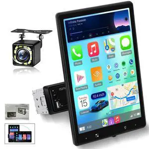 Single Din Car Stereo with Wireless Carplay/Android Auto,10.4" Adjustable Touch Screen Radio with Bluetooth 5.2, Mirror Link, FM Radio, SWC, Backup Camera