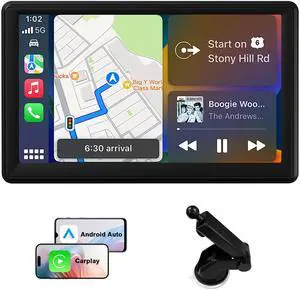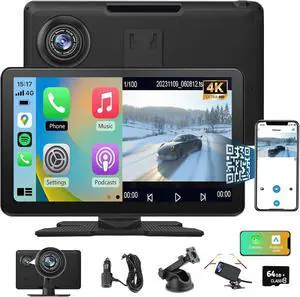 9" Carplay Screen for Car Portable, Carplay & Android Auto Car Stereo, Touchscreen GPS Navigation 4K Dash Cam/1080P Backup Camera/Mirror Link/Bluetooth/Voice Control