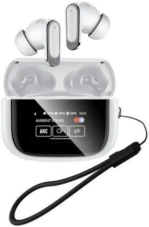 Xmenha ANC Earbuds Touchscreen Bluetooth Earphones Wireless Active Noise Cancelling Wireless Bluetooth with LCD Touch Screen Display Case Earbuds