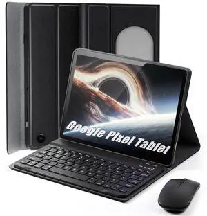 TUNKARMOR Keyboard Case for Google Pixel Tablet 11 inch 2023, Mouse and Detachable Keyboard, PU Leather Cover Case Auto Sleep/Wake - Black