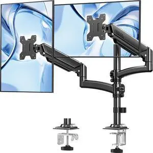 Dual Monitor Stand for Computer Screen up to 32", Taller Monitor Arms Holds 22 lbs Each, Dual Monitor Desk Mount, Height Adjustable Gas Spring VESA Mount with C-clamp Grommet Mounting, Black, Freelift