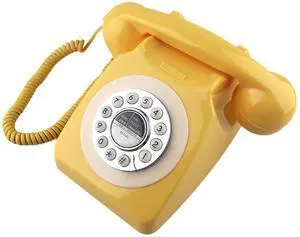 SIXDEFLY Retro Telephone, Classic Landline Telephone Vintage Old Fashioned Corded Telephone with Redial Function,for Home & Office Decor, Yellow