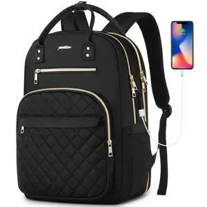YAMTION Laptop Backpack Women,School Backpack for Women USB Bookbag for Business Work Office College Students Teacher,Black 15.6 inch