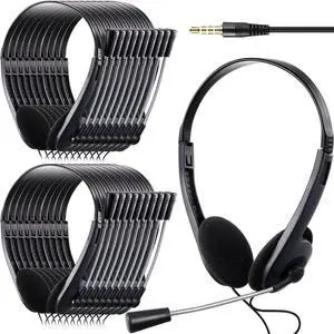 Yunsailing 30 Pack Classroom Headphones with Microphone Headphones Bulk Class Set Lightweight Adjustable Earphones on Ear with 3.5 mm Jack(Black,Metal Stem)