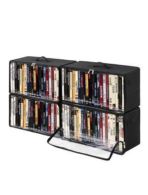 Beveetio 4-Pack DVD Storage Box, Stackable DVD Case Holder Organizer with Front Zippered Clear Window, CD Holder for CD, Blu-ray, VHS, Video Games, and Movie Collection, Holds 100+ Cases