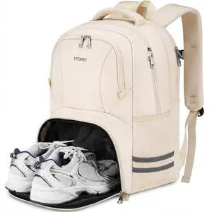 Ytonet Gym Backpack For Women Men, Travel Backpack With Shoe Compartment, Sport Water Resistant Carry on Bag Fit 15.6 Inch Laptop, Camping, Workout, Hiking, College, Beige