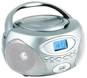 HANNLOMAX HX-311CD Portable CD/MP3 Boombox, PLL AM/FM Radio, USB Port for MP3 Playback, Aux-in, LCD Display, AC/DC Power Source. (Silver)