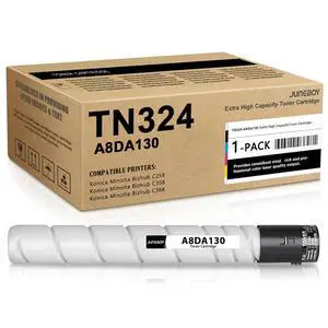 Juneboy TN324 (A8DA130) High Yield Toner Cartridge (Black,1-Pack) Compatible TN-324 TN324 Black Toner Cartridges Replacement for Konica Minolta Bizhub C258 C308 C368 Printers
