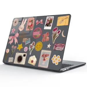 Idocolors Case Compatible with MacBook Air 13 inch 2022 2021 2020 2019 2018 M1 A2337 A2179 A1932, Crystal Hard Shell Protective Cover for MacBook Air 13.3 inch Case (Stickers/Black)