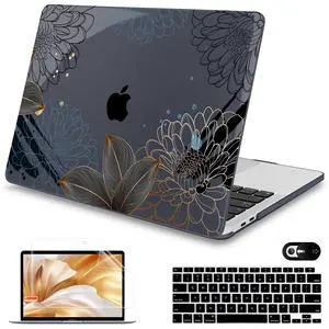 Mektron for MacBook Air 13 Case A1466/A1369 (2010-2017 Release), Snap-on Plastic Hard Shell Cover for MacBook Air 13.3 inch with Keyboard Cover, Line Chrysanthemums