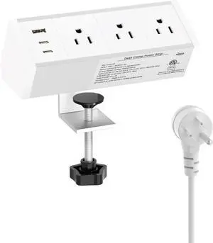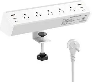Tecmojo Desk Clamp Power Strip 3 Outlet with 1 USB A and 2 USB C Ports, 6 ft Cord, Desk Outlet Station Fit 1.6" Tabletop Edge,ETL Listed,White