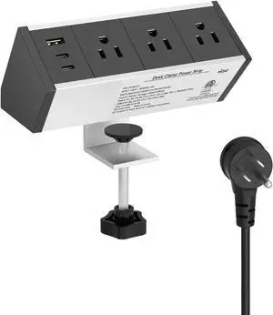 Tecmojo Desk Clamp Power Strip 5 Outlet with 2 USB A and 4 USB C Ports, 6 ft Cord, Desk Outlet Station Fit 1.6" Tabletop Edge,Over Loading Protection,ETL Listed,Black