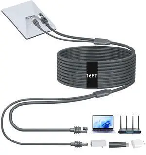 HanCenDa 2 in 1 for Starlink Mini Ethernet Cable 16.4FT/5M, for Starlink Mini Power Cord + RJ45 Ethernet Cable, DC to DC, DC to C Power Cable Relacement Waterproof Accessries for Boat, Car