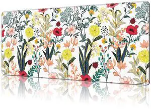 Desk Pad, Vintage Aesthetic Flower XXL Gaming Mouse Pad with Stitched Edges,Non-Slip Waterproof Rubber Base Large Desk Mat for Keyboard and Mouse 35.4"x15.7"