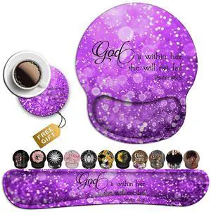 Mouse Pad with Wrist Support, Ergonomic Gel Mouse Pad Memory Foam Keyboard Wrist Rest, Suitable forfor Women Office Typing Games Desktop Decoration, Beautiful Purple Glitter and Psalm 46:5 Bible