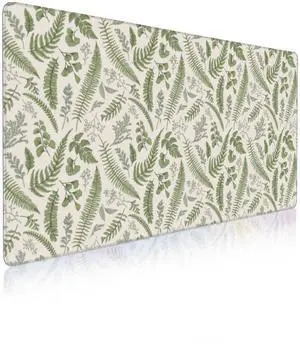 Cute Plant Lover Desk Mat Cozy Mouse pad Beige, XXL Large Extended Earthy Brown Green Aesthetic Floral Mousepad Gaming Desk Pad, Big Laptop Keyboard and Mouse Mat with Stitched Edges 31.5x15.7 in