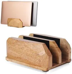 DnU Avenue Width Adjustable Vertical Laptop Stand for Desk, Laptop Holder to Dock MacBook, MacBook Pro and Other Laptops, Versatile Vertical Laptop Docking Solutions - Mango Wood