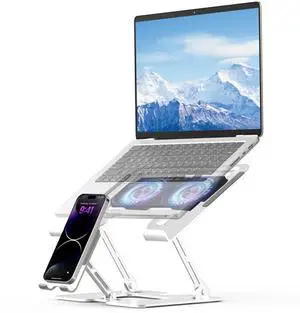 Laptop Cooling Stand with Detachable Fan,2-IN-1 Laptop Stand with Phone Holder and Silent Fans,Adjustable Height and Angle,Carbon Steel Framework,Laptop Cooling Pad for up to 16Laptop (White)