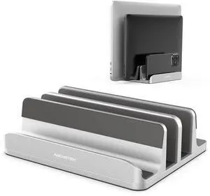 Vertical Laptop Stand [Updated Version],3-Slot Space-Saving Aluminum Desktop Stand Holder with Adjustable Dock Size Compatible for All MacBook/HP/Dell/Surface/Samsung/Chrome Book(Silver)