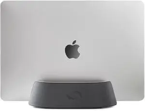 HumanCentric Vertical Laptop Stand in Vegan Black Leather, Upright Adjustable Holder and Dock, Laptop Vertical Stand Fits MacBook Pro and Other Laptops .5" to 1.5", Clamshell Compatible