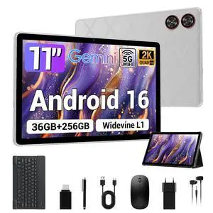 ROSYVIBE 2026 All-in-One 11 Inch Android 16 Tablet Bundle, 36GB RAM 256GB (1TB TF), 2K IPS Widevine L1, Keyboard Mouse Stylus Case, 8-Core T606,8000mAh, 5G/2.4G WiFi, 8+13MP,FCC/CE,for Adults - Gray
