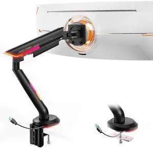 ARES WING Single Monitor Mount with RGB, Heavy-Duty Gaming Monitor Arm fits for 24"-57" Ultrawide Screen, Adjustable Computer Monitor Stand Holds Up to 60LBS with VESA Mount, Clamp & Grommet, Black