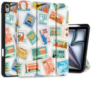 DONGKE for iPad Air 13 Inch Case M3 2025, M2 2024 - [Built-in Pencil Holder] Slim Trifold Stand Shockproof Protective Cover with Soft TPU Back Support Auto Sleep/Wake - Post Stamps