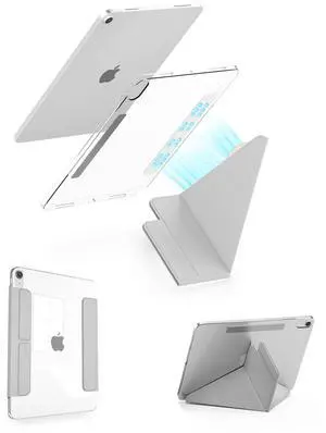 Feams Y Fold Folio for iPad Air 11 inch Case M4/M3/M2 (2026/2025/2024), iPad Air 5th/4th Gen 10.9 Inch 2022/2020, Y-Shaped Stand Magnetic Detachable Front Cover with Clasp & Auto Sleep, Gray
