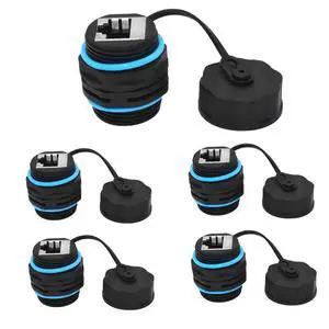 AUSGLEIFEN 5PCS Panel Mount RJ45 Waterproof Connector IP68 Shielded (STP) Cat5/5e/6 8P8C Ethernet LAN Cable Connector Network Cable Double Head Outdoor LAN Coupler Adapter with Waterproof/Dust Cap