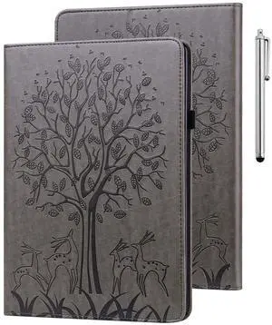 ALILANG for Kindle Fire Max 11 Case (13th Generation, 2023 Release), Tree Embossed PU Leather Card Slot Shockproof Smart Cover for Kindle Fire Max 11 2023 Tablet Case -Gray