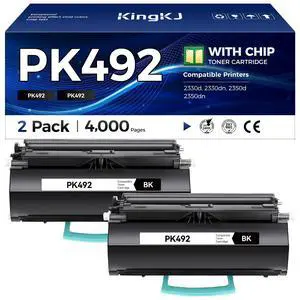 KingKJ PK492 Black Toner Cartridge 2-Pack High Yield Replacement for Dell 2330 2350 PK492 Toner Compatible with Dell 2330d 2330dn 2350d 2350dn Laser Printer Ink All-in-One Copier Copy2,000 Pages