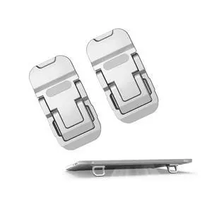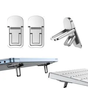 PONICOR 2PCS Zinc Alloy Mini Foldable Laptop Stand, Portable Computer Keyboard Riser with 2 Adjustable Angles, Self-Adhesive Invisible Notebook Stand and Keyboard Lift for Desk (Silver)