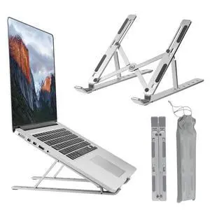 Adjustable Laptop Stand Ergonomic Aluminum Riser for Desk, Fits 9"-15.6" Laptops Foldable, Portable, Ventilated, Sturdy, Anti-Slip, Ideal for Home & Office